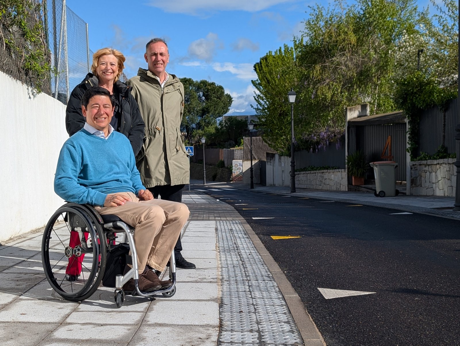 García Romero y Fanjul, durante su visita a la calle Nadir, del distrito de Moncloa-Aravaca, recientemente intervenida para ganar en accesibilidad