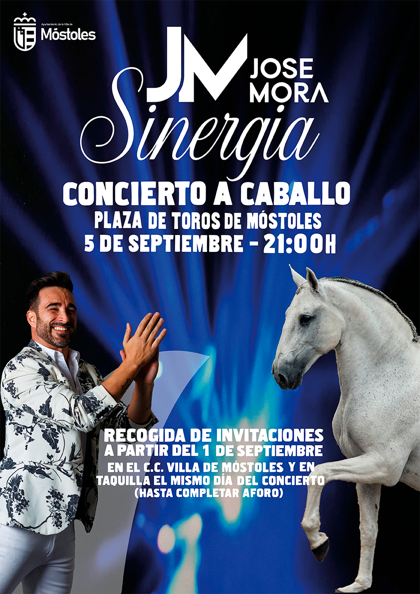 El cantante José Mora ofrecerá un concierto a caballo el viernes 5 de septiembre a las 21:00 h en la plaza de toros de Móstoles. El espectáculo "Sinergia" combina la música con el mundo ecuestre, fusionando el pop en directo con la magia ecuestre y la energía de una banda de diez músicos en escena. Durante el concierto, José Mora interpretará un repertorio de grandes éxitos y se prometen sorpresas especiales. La entrada es gratuita y las invitaciones podrán recogerse a partir del 1 de septiembre en el Centro Cultural Villa de Móstoles o en la taquilla de la plaza de toros el mismo día del espectáculo desde las 17:00 h. # Concierto de José Mora en la Plaza de Toros de Móstoles