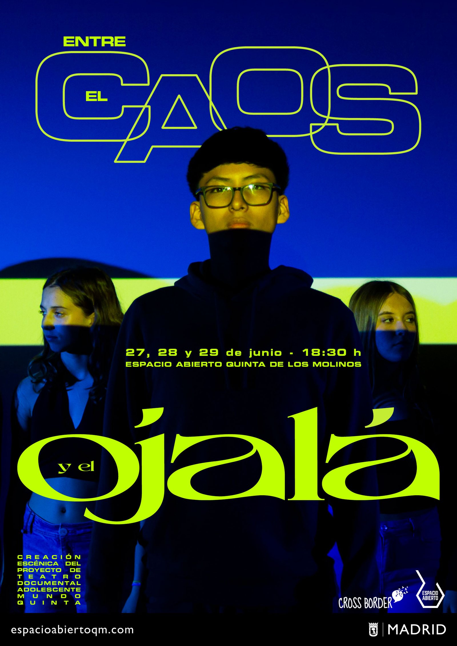 Entre el caos y el ojalá is a collective creation of the group of young people from the seventh edition of Mundo Quinta: a production of Espacio Abierto Quinta de los Molinos directed by Cross Border.