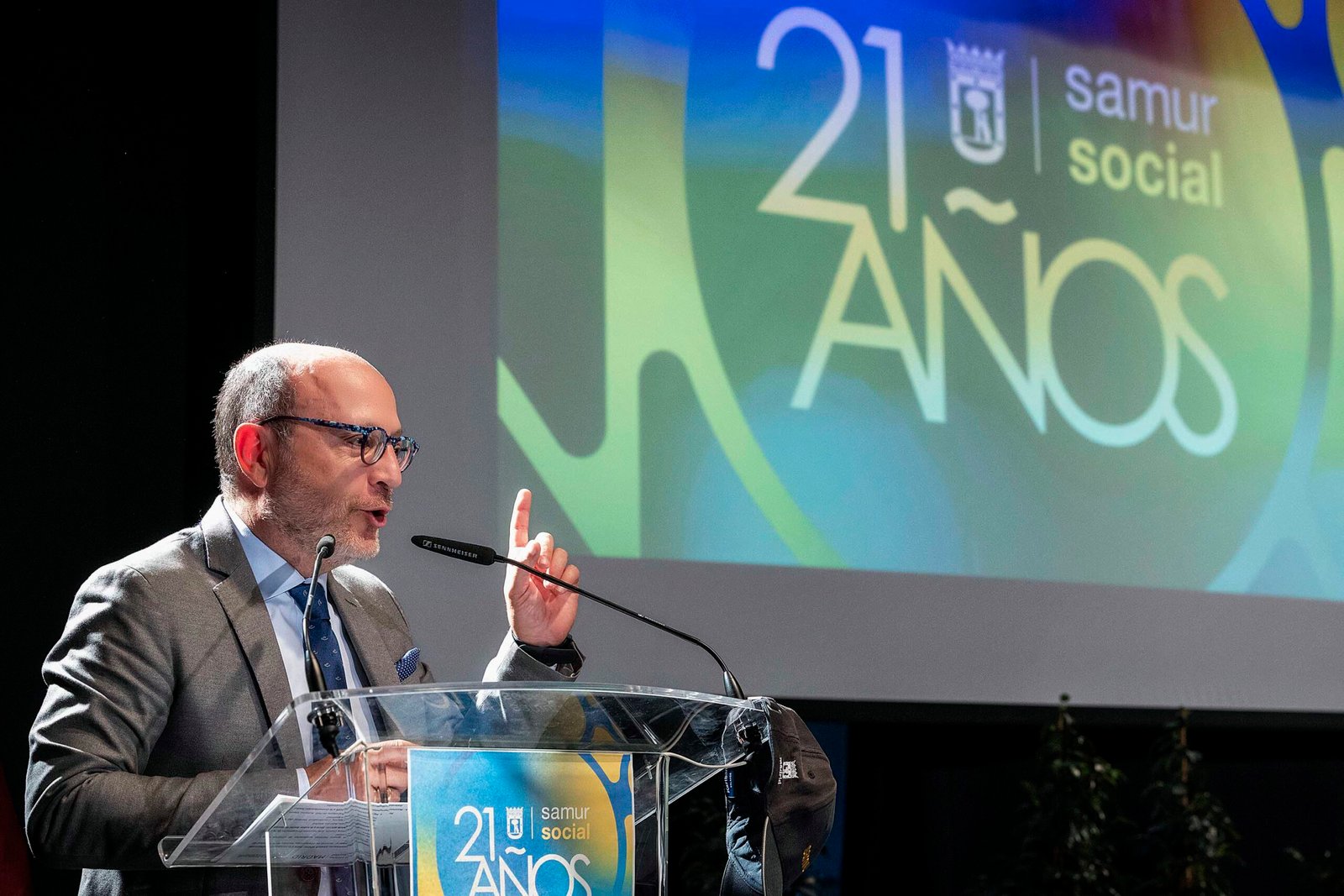 El delegado de Políticas Sociales, Familia e Igualdad, José Fernández, ha entregado hoy los Reconocimientos SAMUR Social 2025 que distinguen a instituciones, organismos, proyectos y personas destacados por su atención a personas en situación de vulnerabilidad y por su colaboración con este servicio municipal referente en toda España en la intervención en emergencias sociales. Los premios se han concedido en el acto con el que el Ayuntamiento de Madrid conmemora el XXI aniversario de este recurso.
